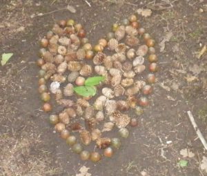 Was lässt sich daraus machen? Eine Eichelschlange? Ein Blätterkreis am Baum? Ein Mandala mit verschiedenen Farben und Formen?