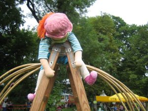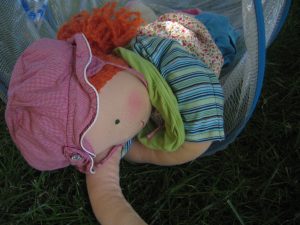 Laura und Emilia helfen ihr. Sie kriechen durch den Tunnel, balancieren und rutschen.